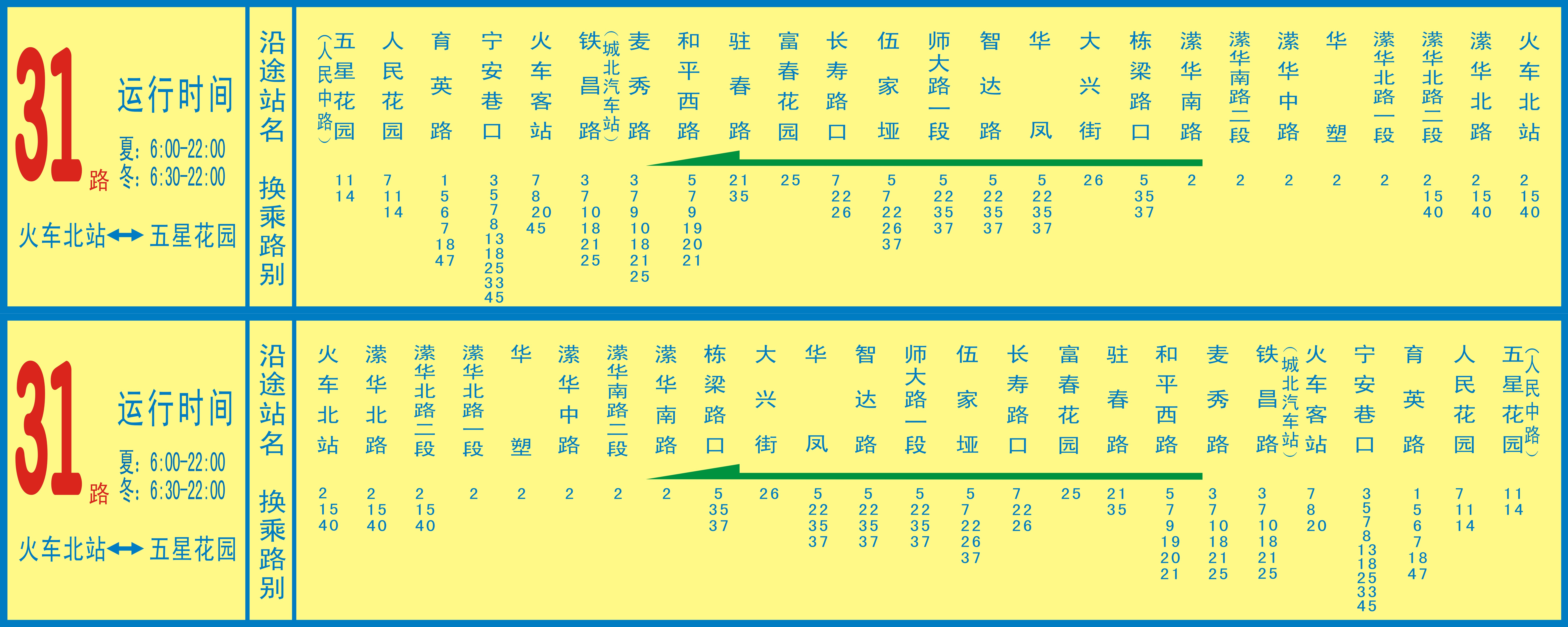 31路:火車北站----五星花園